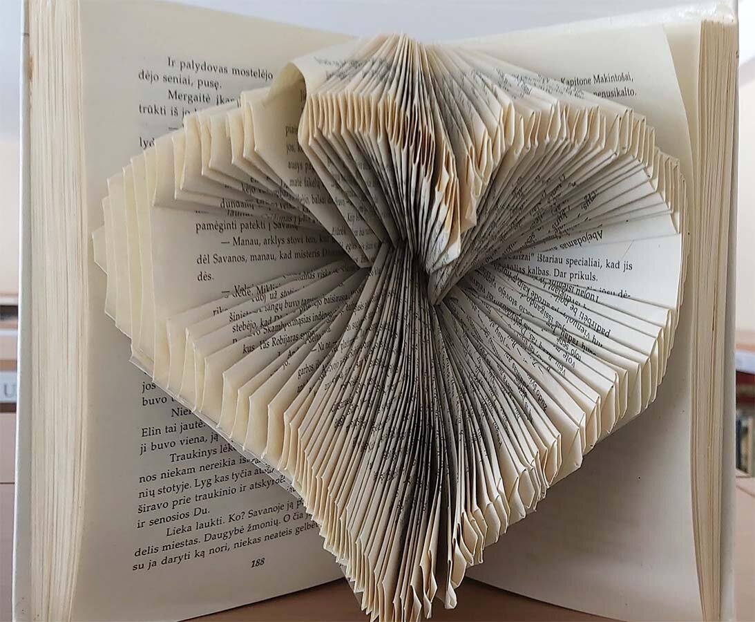 Tiek namie, tiek bibliotekose atsiranda jau neskaitomų knygų, kurios keliauja į makulatūrą. Tokios knygos tinka kūrybai lankstant ir kuriant naują meno kūrinį, kuris bus puiki namų dekoracija.