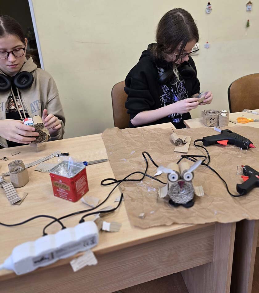2e klasės mokiniai kūrybiškai ieškojo sprendimų sausio 7 ir 17 dienomis. Jie nagrinėjo antrinių žaliavų panaudojimo galimybes bei analizavo oro užterštumo skirtumus tarp miesto ir užmiesčio. Mokiniai sprendė ekologines problemas, kurdami istorijas – komiksus, taip gilindami supratimą apie aplinkosaugos iššūkius.