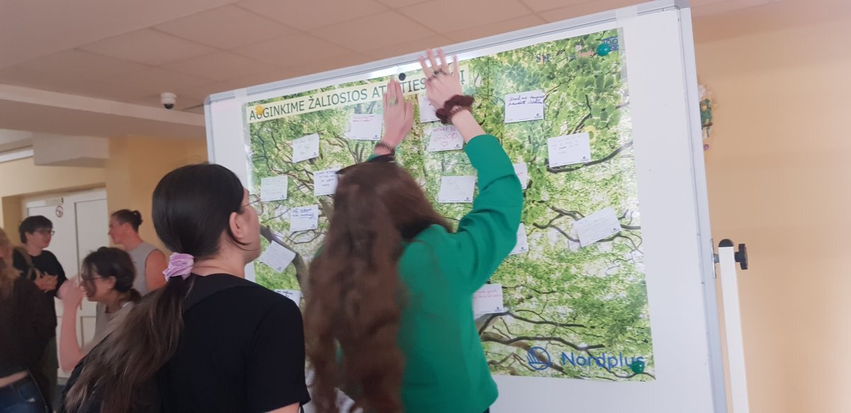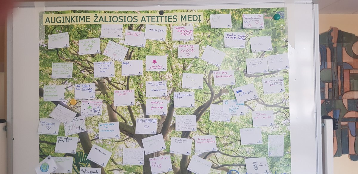 Akcijos metu gimnazijos fojė užaugo Žaliosios ateities medis, kurio šakas papuošė palinkėjimai sau ir pasauliui, veikė projekto dalyvių fotografijų paroda.