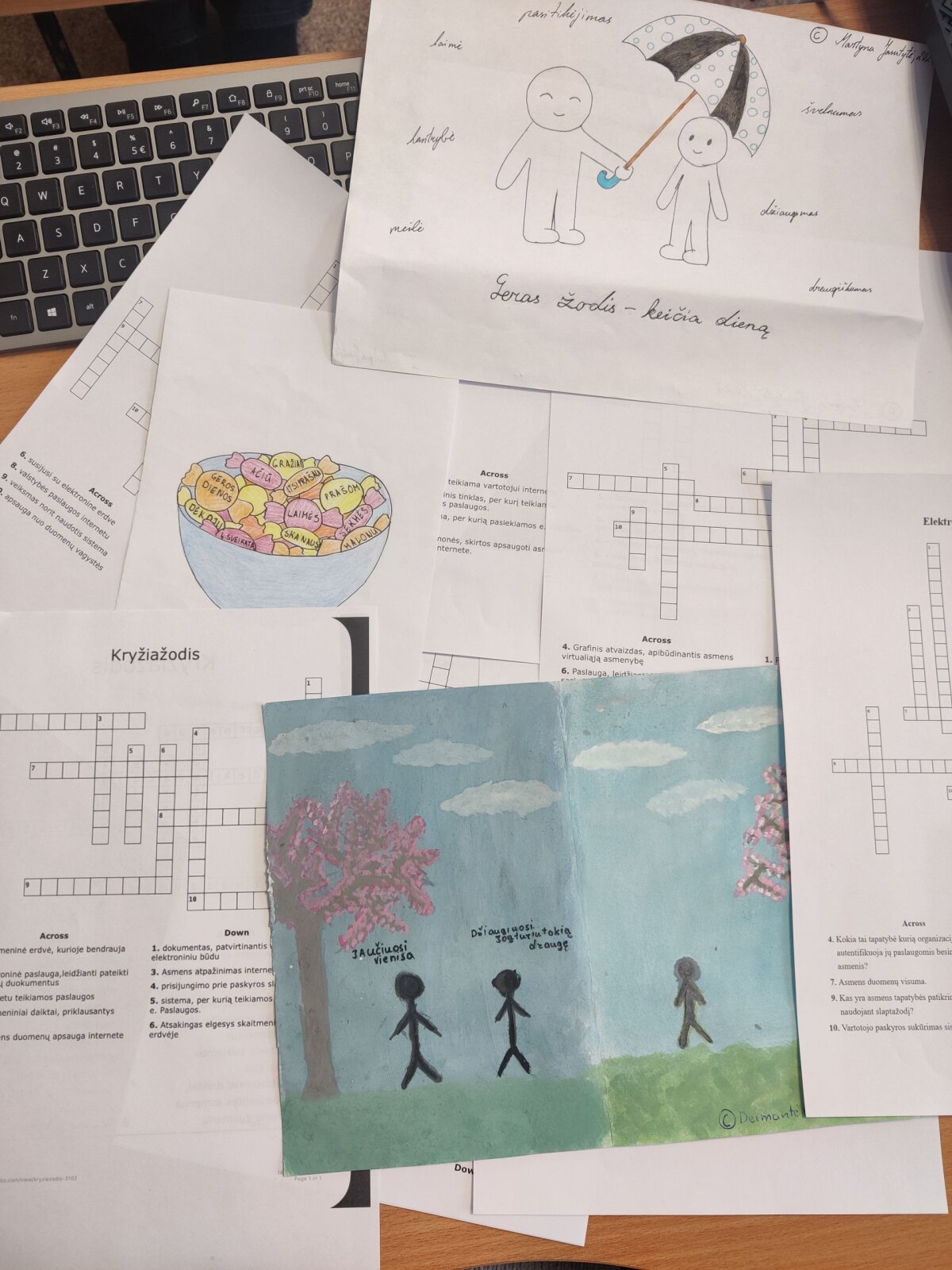 Gimnazistai savo žinias įtvirtino neįprastu būdu – pasitelkdami kūrybiškumą. Mokiniai patys tapo edukacinio turinio kūrėjais: kūrė originalius kryžiažodžius, į kuriuos sumaniai įpynė terminus nuo „dvigubos autentifikacijos“ iki „fisingo“ atakų ir sprendė kolegų parengtas užduotis, taip azartiškai pasitikrindami, ar gerai orientuojasi saugaus interneto labirintuose.