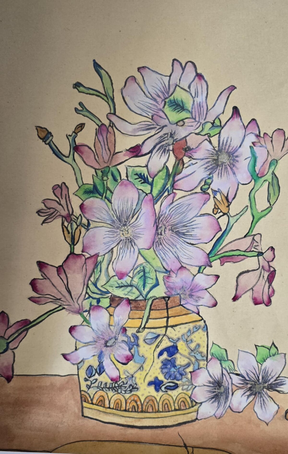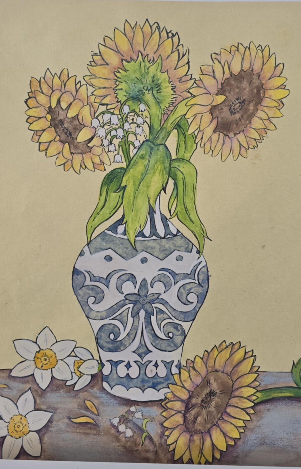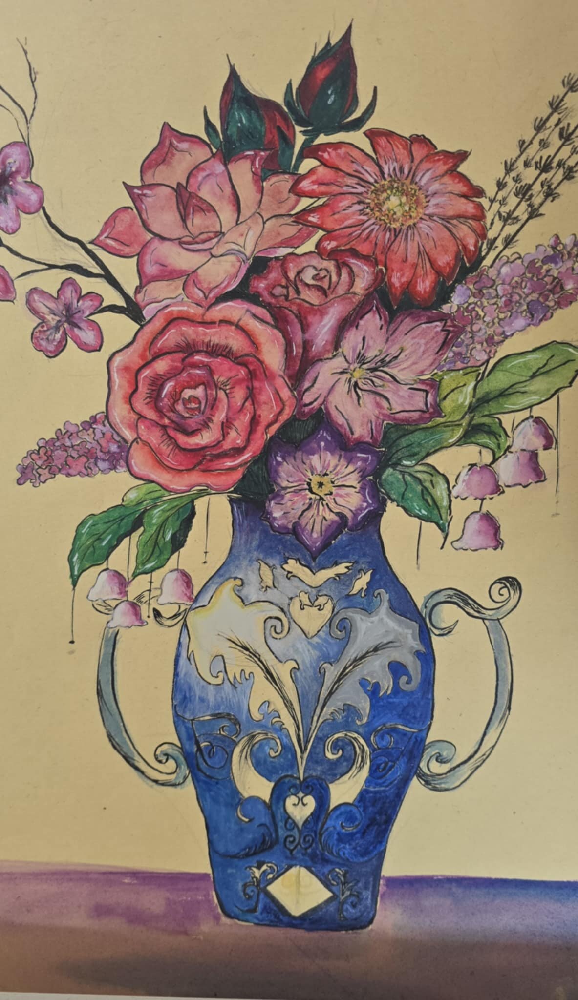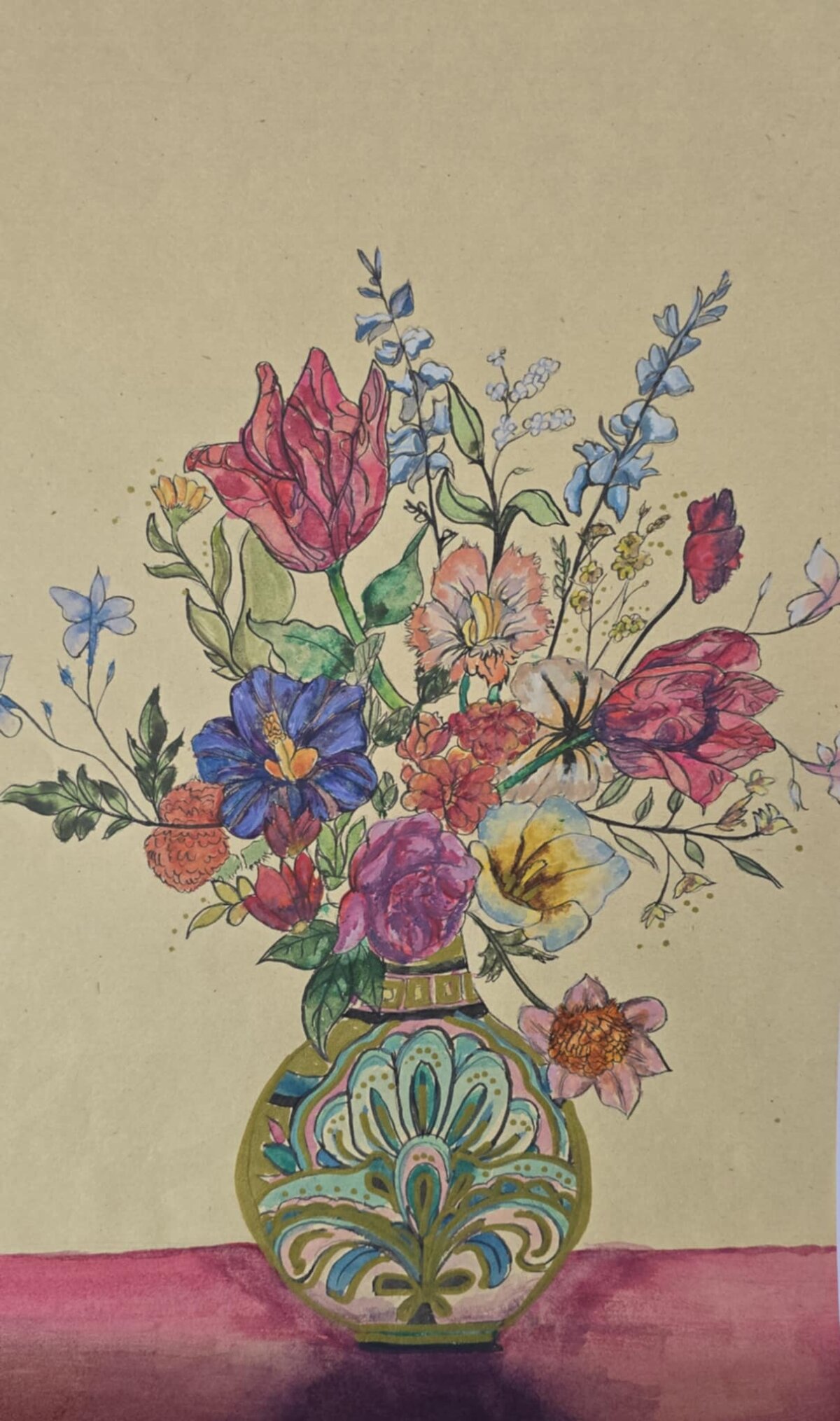 3 klasės gimnazistų tapybos darbai - barokiniai natiurmortai, sukurti akvarelės ir sumi-e tapybos stiliumi. Šiuose kūriniuose mokiniai tyrinėjo skirtingų kultūrų meno dialogą: flamandy baroko natiurmortų puošnumą ir japonų akvarelinės tapybos subtilumą. Įkvėpimo šaltiniu tapo baroko laikotarpio flamandų menininkų darbai, kuriuose gėlės komponuojamos prabangiose vazose, kuriamos sodrios, turtingos kompozicijos. Analizuodami šiuos kūrinius mokiniai sėmėsi idėjų ir kūrė savo gėlių kompozicijas. Darbuose įvairios gėles, tarsi ką tik nuskintas iš barokinio sodo gėlyno. Kiekvienas žiedas, lapas ar stiebelis tampa svarbia kompozicijos dalimi. Nors kompozicijų idėja remiasi baroko puošnumu, jų atlikimas artimas japonų akvarelei ir sumi-e tapybai – lengvi, skaidrūs potėpiai, subtilios spalvų dermės ir dėmesys kiekvienai detalei.3 klasės gimnazistų tapybos darbai - barokiniai natiurmortai, sukurti akvarelės ir sumi-e tapybos stiliumi. Šiuose kūriniuose mokiniai tyrinėjo skirtingų kultūrų meno dialogą: flamandy baroko natiurmortų puošnumą ir japonų akvarelinės tapybos subtilumą. Įkvėpimo šaltiniu tapo baroko laikotarpio flamandų menininkų darbai, kuriuose gėlės komponuojamos prabangiose vazose, kuriamos sodrios, turtingos kompozicijos. Analizuodami šiuos kūrinius mokiniai sėmėsi idėjų ir kūrė savo gėlių kompozicijas. Darbuose įvairios gėles, tarsi ką tik nuskintas iš barokinio sodo gėlyno. Kiekvienas žiedas, lapas ar stiebelis tampa svarbia kompozicijos dalimi. Nors kompozicijų idėja remiasi baroko puošnumu, jų atlikimas artimas japonų akvarelei ir sumi-e tapybai – lengvi, skaidrūs potėpiai, subtilios spalvų dermės ir dėmesys kiekvienai detalei.