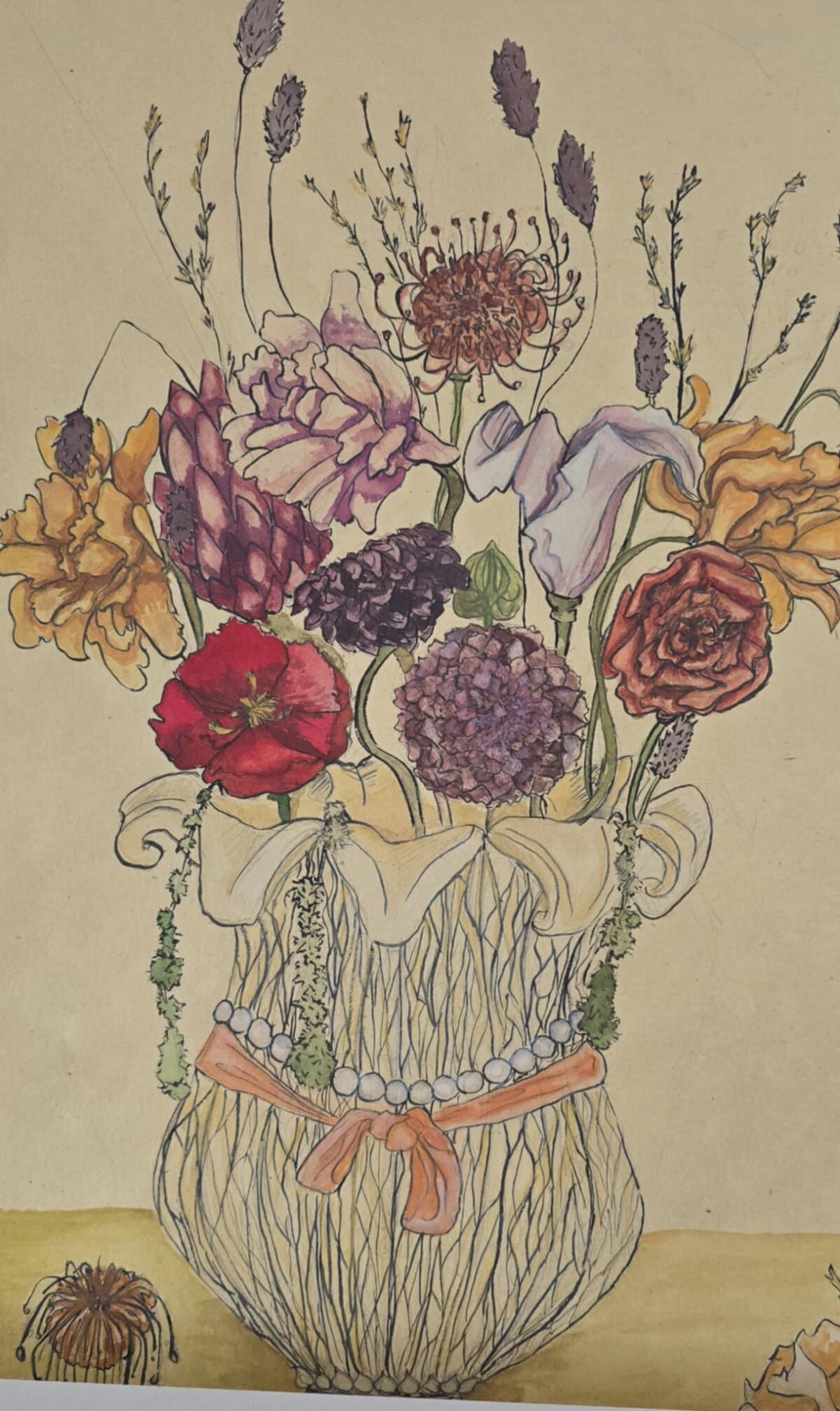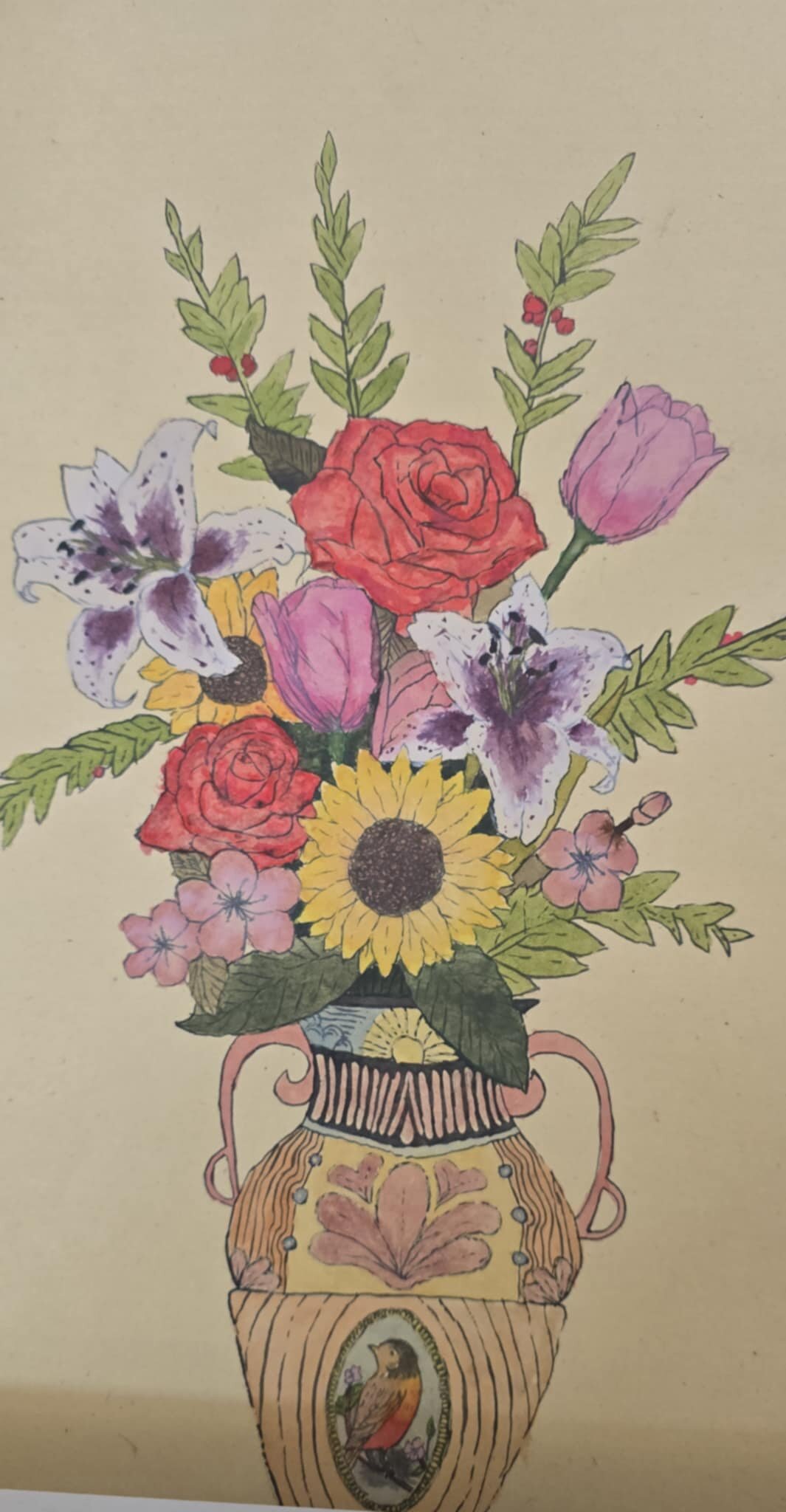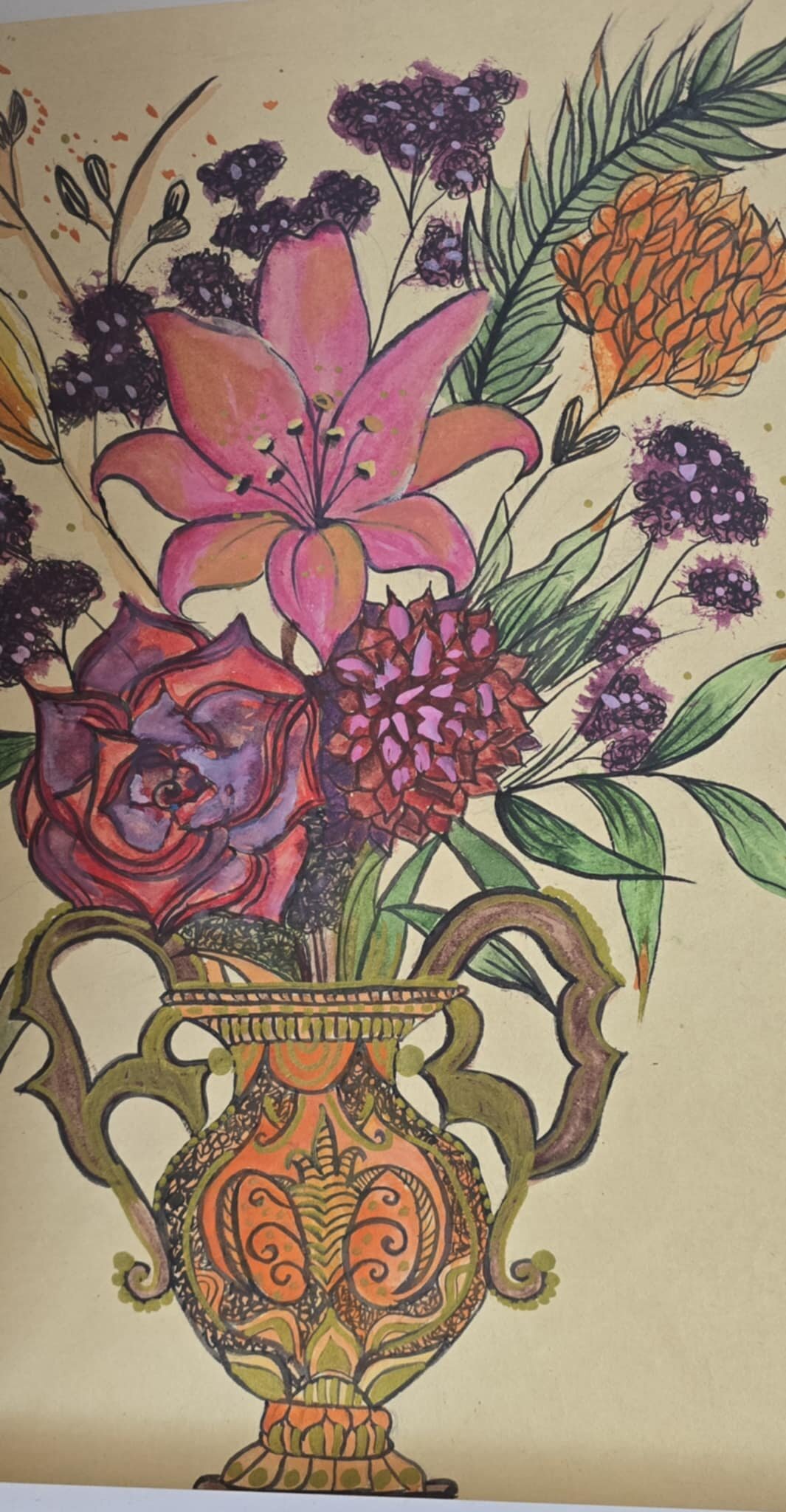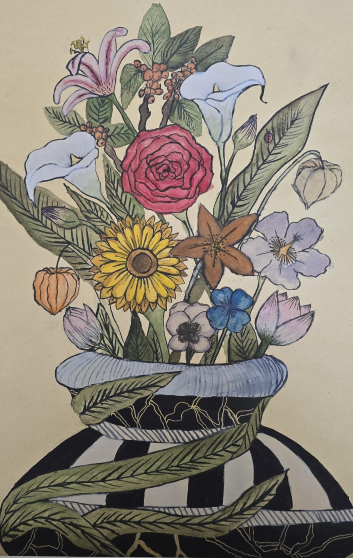 3 klasės gimnazistų tapybos darbai - barokiniai natiurmortai, sukurti akvarelės ir sumi-e tapybos stiliumi. Šiuose kūriniuose mokiniai tyrinėjo skirtingų kultūrų meno dialogą: flamandy baroko natiurmortų puošnumą ir japonų akvarelinės tapybos subtilumą. Įkvėpimo šaltiniu tapo baroko laikotarpio flamandų menininkų darbai, kuriuose gėlės komponuojamos prabangiose vazose, kuriamos sodrios, turtingos kompozicijos. Analizuodami šiuos kūrinius mokiniai sėmėsi idėjų ir kūrė savo gėlių kompozicijas. Darbuose įvairios gėles, tarsi ką tik nuskintas iš barokinio sodo gėlyno. Kiekvienas žiedas, lapas ar stiebelis tampa svarbia kompozicijos dalimi. Nors kompozicijų idėja remiasi baroko puošnumu, jų atlikimas artimas japonų akvarelei ir sumi-e tapybai – lengvi, skaidrūs potėpiai, subtilios spalvų dermės ir dėmesys kiekvienai detalei.3 klasės gimnazistų tapybos darbai - barokiniai natiurmortai, sukurti akvarelės ir sumi-e tapybos stiliumi. Šiuose kūriniuose mokiniai tyrinėjo skirtingų kultūrų meno dialogą: flamandy baroko natiurmortų puošnumą ir japonų akvarelinės tapybos subtilumą. Įkvėpimo šaltiniu tapo baroko laikotarpio flamandų menininkų darbai, kuriuose gėlės komponuojamos prabangiose vazose, kuriamos sodrios, turtingos kompozicijos. Analizuodami šiuos kūrinius mokiniai sėmėsi idėjų ir kūrė savo gėlių kompozicijas. Darbuose įvairios gėles, tarsi ką tik nuskintas iš barokinio sodo gėlyno. Kiekvienas žiedas, lapas ar stiebelis tampa svarbia kompozicijos dalimi. Nors kompozicijų idėja remiasi baroko puošnumu, jų atlikimas artimas japonų akvarelei ir sumi-e tapybai – lengvi, skaidrūs potėpiai, subtilios spalvų dermės ir dėmesys kiekvienai detalei.