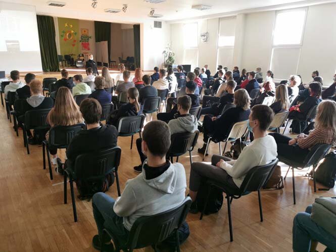 Karoliniškių gimnazistai plojimais padėkojo už informatyvią ir naudingą paskaitą. Išvyka į ugdymo įstaigą buvo informatyvi, tikslinga ir prasminga.